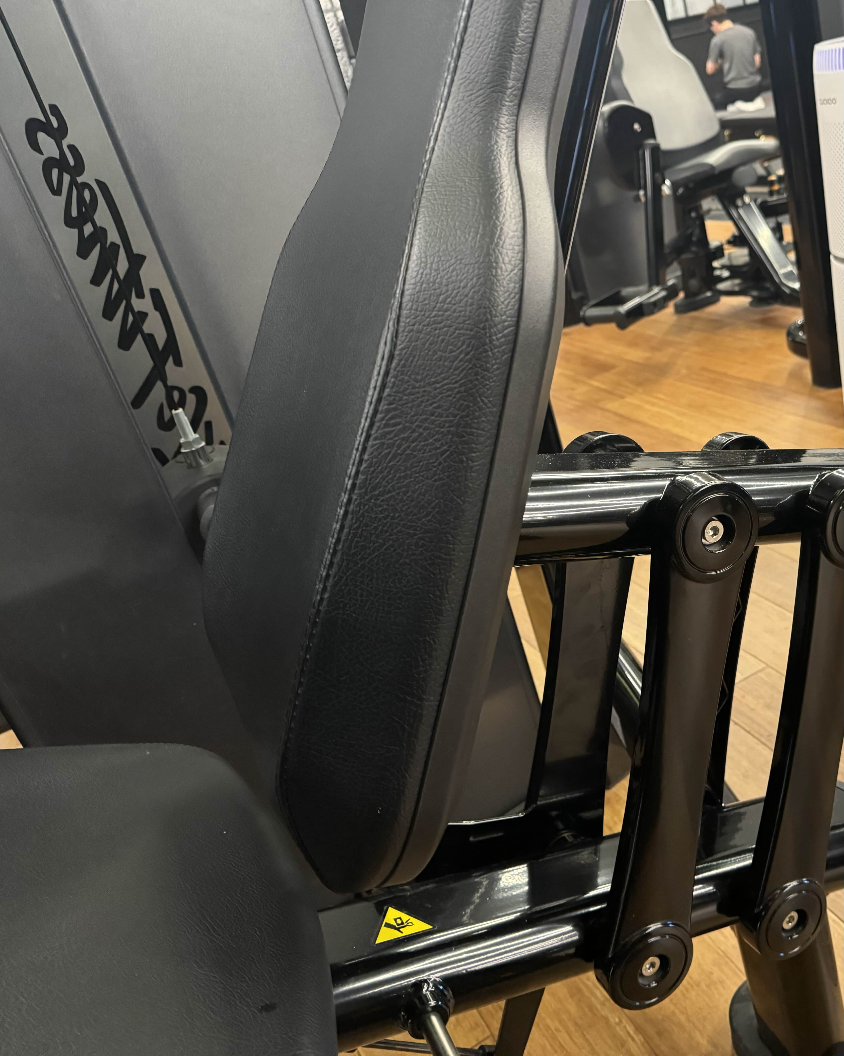 - 이제 의자에 앉아 다리를 쭉 펴서 다리 패드에 아킬레스건을 파지시킵니다.